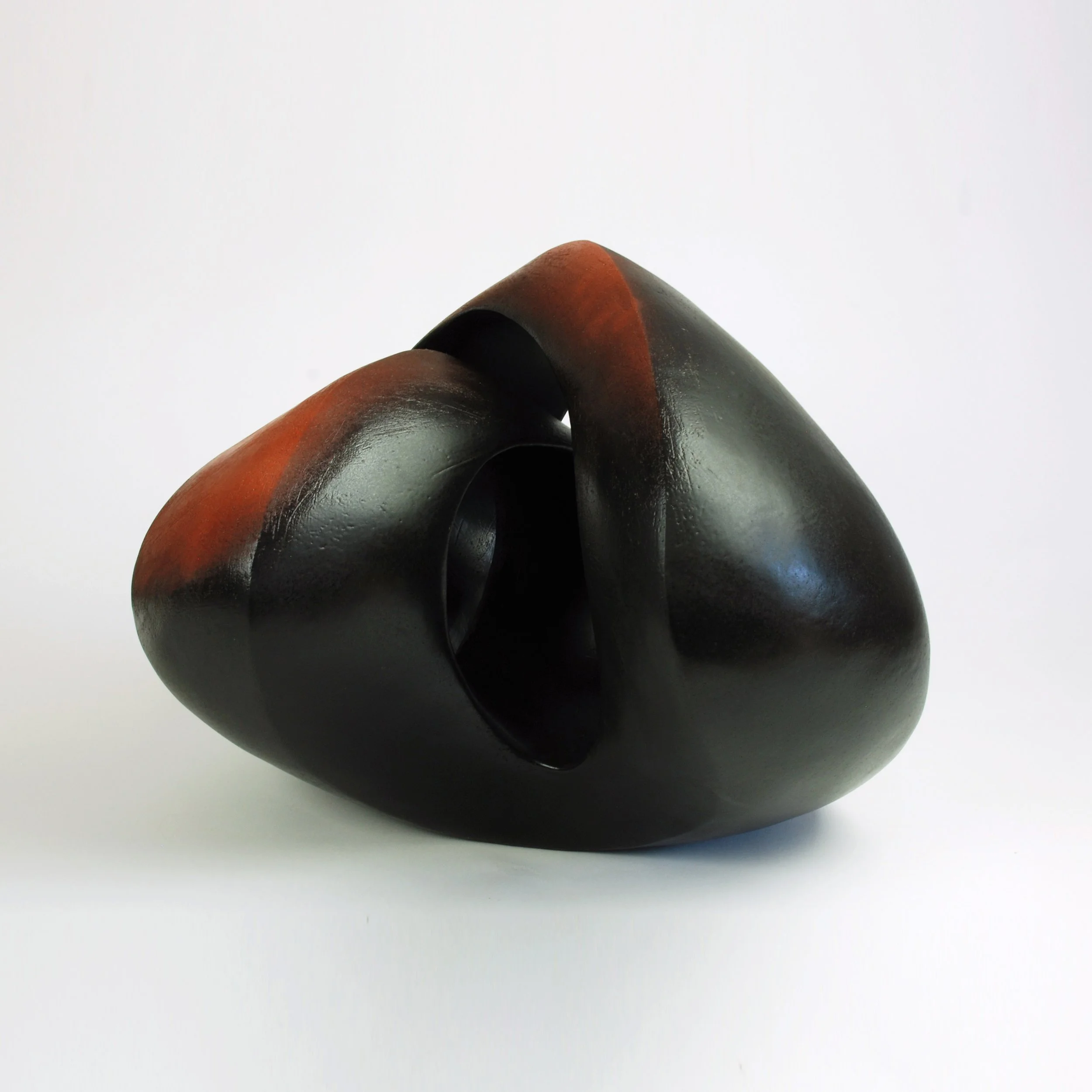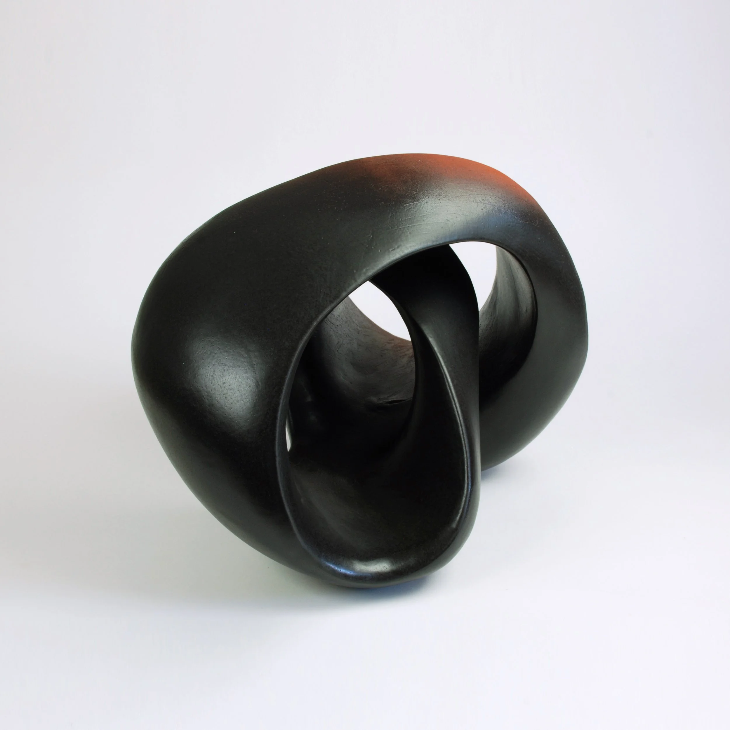 recoil in black, 2020. Handbuilt red earthenware, hollow construction, black glaze, fired to cone 02. h:15.5” x w:16.75” x d:20.25”